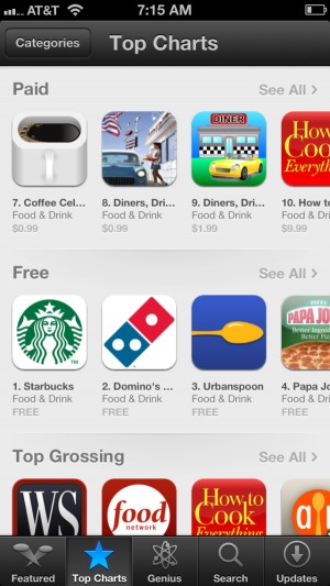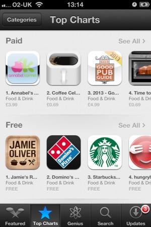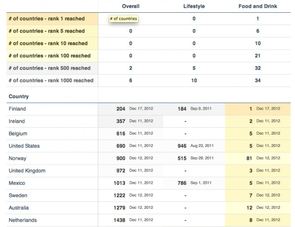 TUAW tweeted the article which received hundreds of retweets across a few days. I nervously checked the rankings to find that Coffee Cellar was shooting up the charts in the Food & Drink category, first in a few countries and then in most.