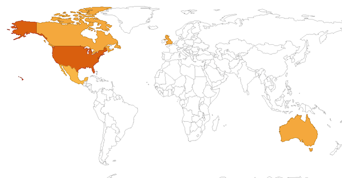 …and finally the country distribution of sales.