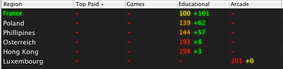 Things came to a head on the second day when Astro Noughts hit #14 in the top free Apps in France. It was also in the top free games in US, UK, and Canada as well as the #1 educational game in 5 countries and within the top 10 educational game in 17 countries...