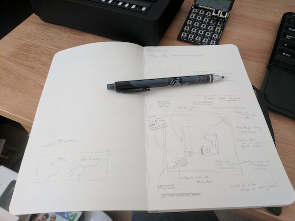 I think I’ve settled on an idea. It has a basic premise and I think the assets are achievable in the time. There’s some complexity around input so I’ll focus on that first. I’m going to box out some areas of the screen with some basic shapes.